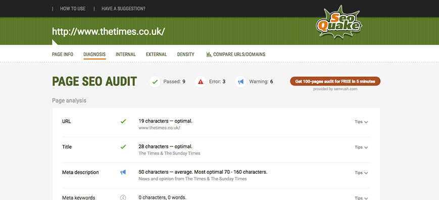 8. SEOQuake: An All-In-One Free SEO Toolkit